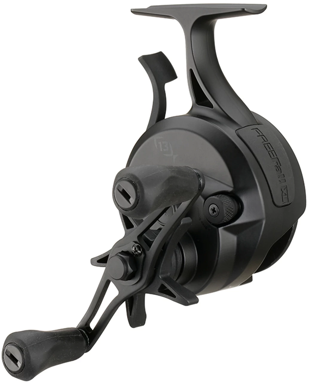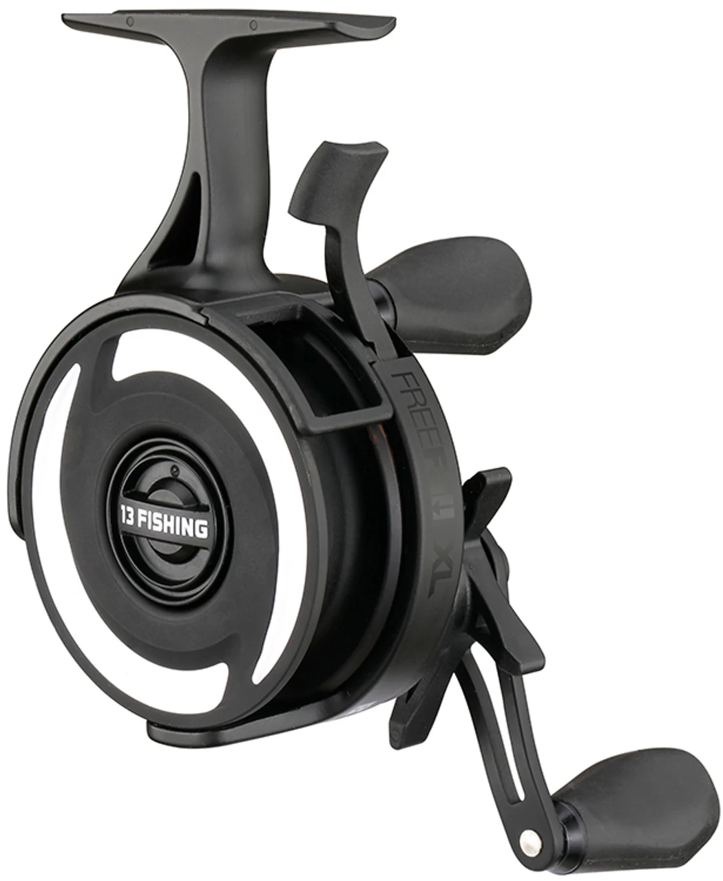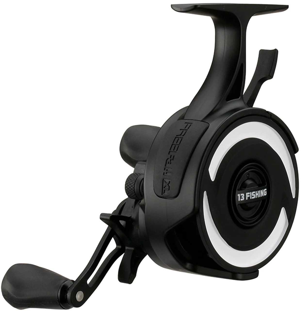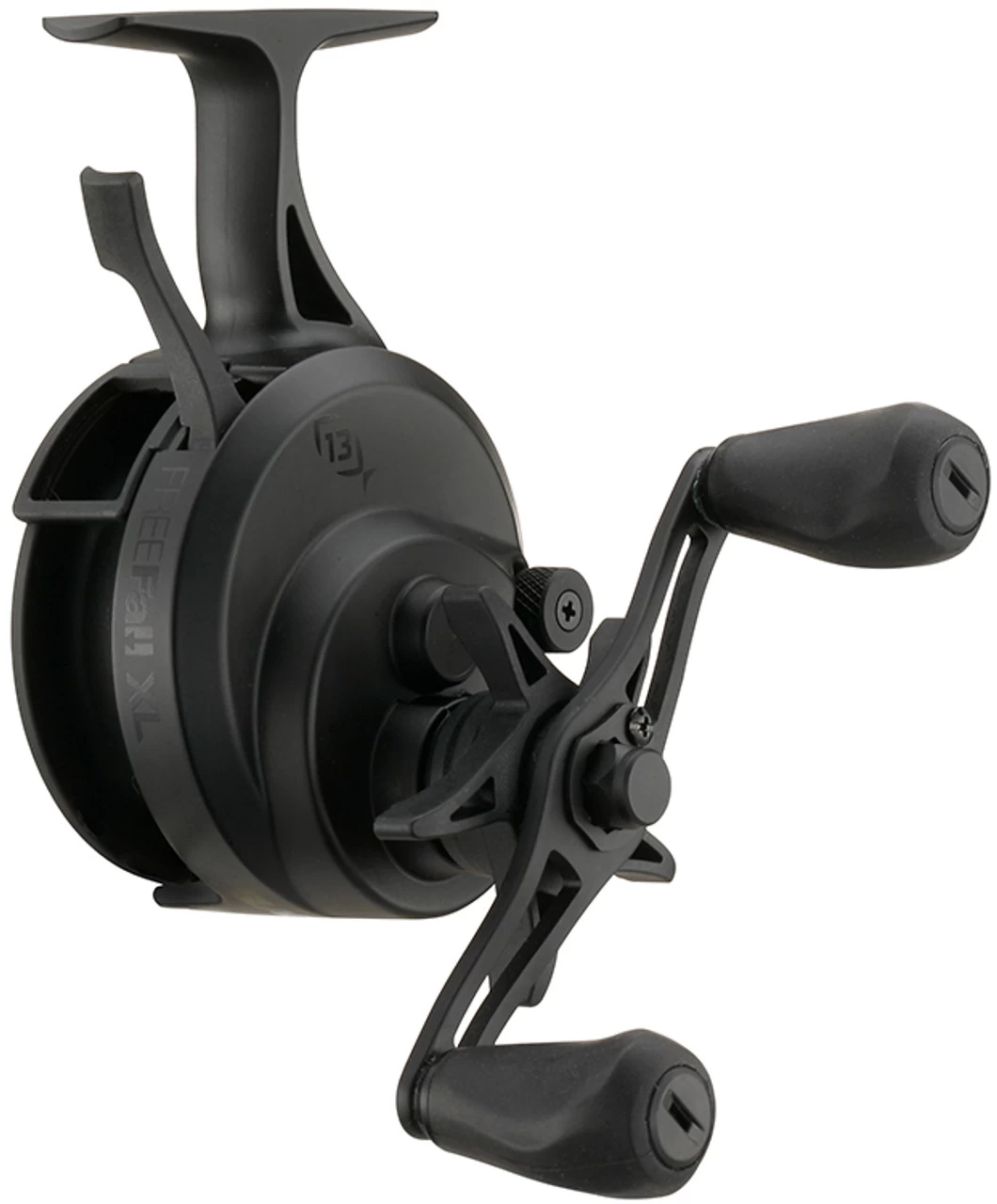 An enhanced version of 13 Fishing’s best inline ice reel, the 13 Fishing Black Betty FreeFall XL Ice Reels are supersized to meet the demands of those targeting trophy fish out on the hard water. Featuring the same revolutionary FreeFall trigger system as the original, the FreeFall XL allows anglers to quickly reach specific depths and instantly turn bites on the fall into hook ups. Simply engage the trigger to begin your drop, and release the trigger to reengage the reel for an instant hook set. The FreeFall XL features a Core Balanced Magnetic Breaking system and faster drop rate, and has an adjustable drop speed control dial to offer equally effective performance with a variety of lure weights. A new streamlined design adds a “pencil grip” comfort palm pad for comfortable use despite your grip preference. With an enhanced line capacity and maximum drag, the FreeFall XL is perfect for battling plus-sized ice fishing targets like big walleye, pike, and lake trout.