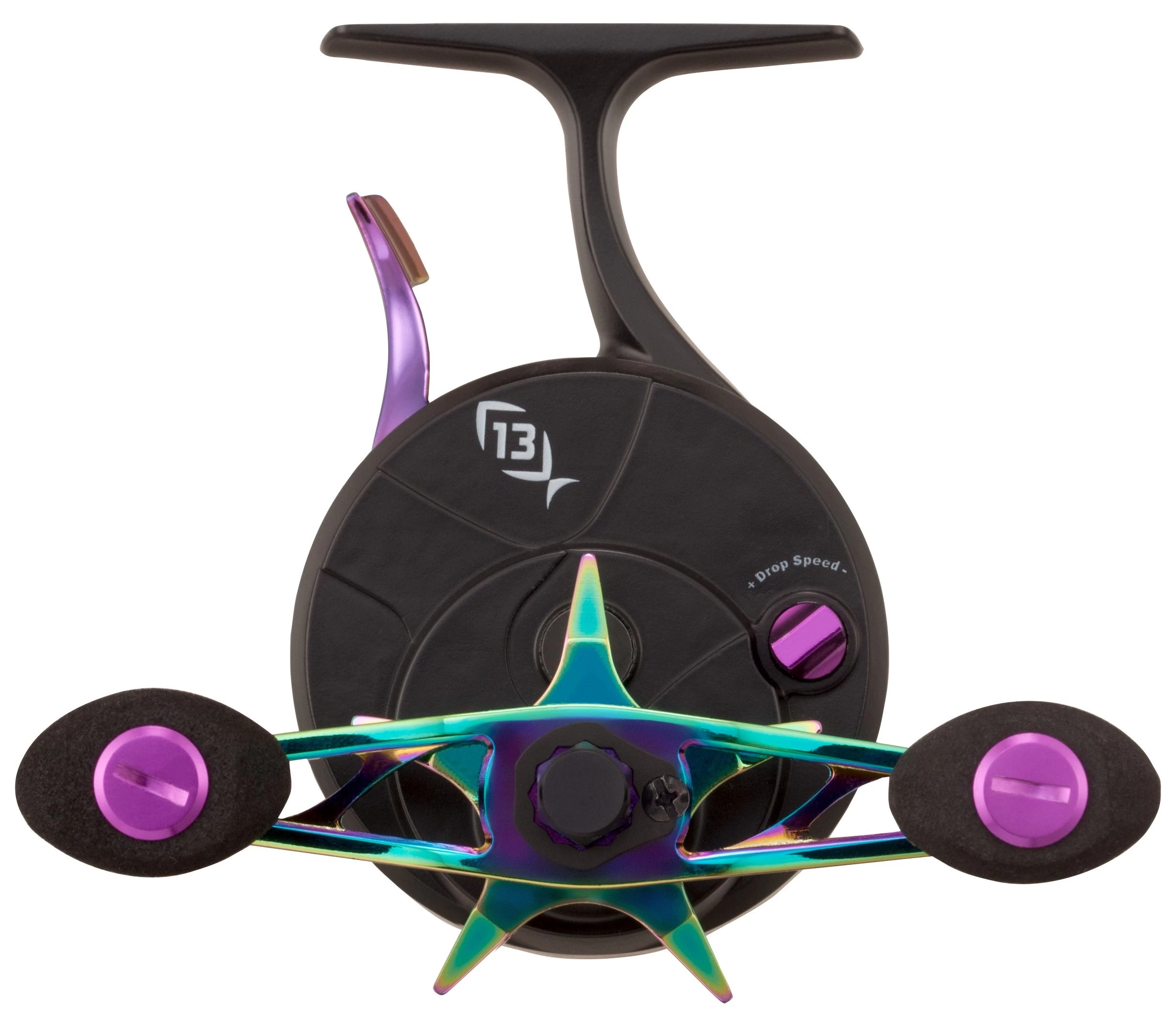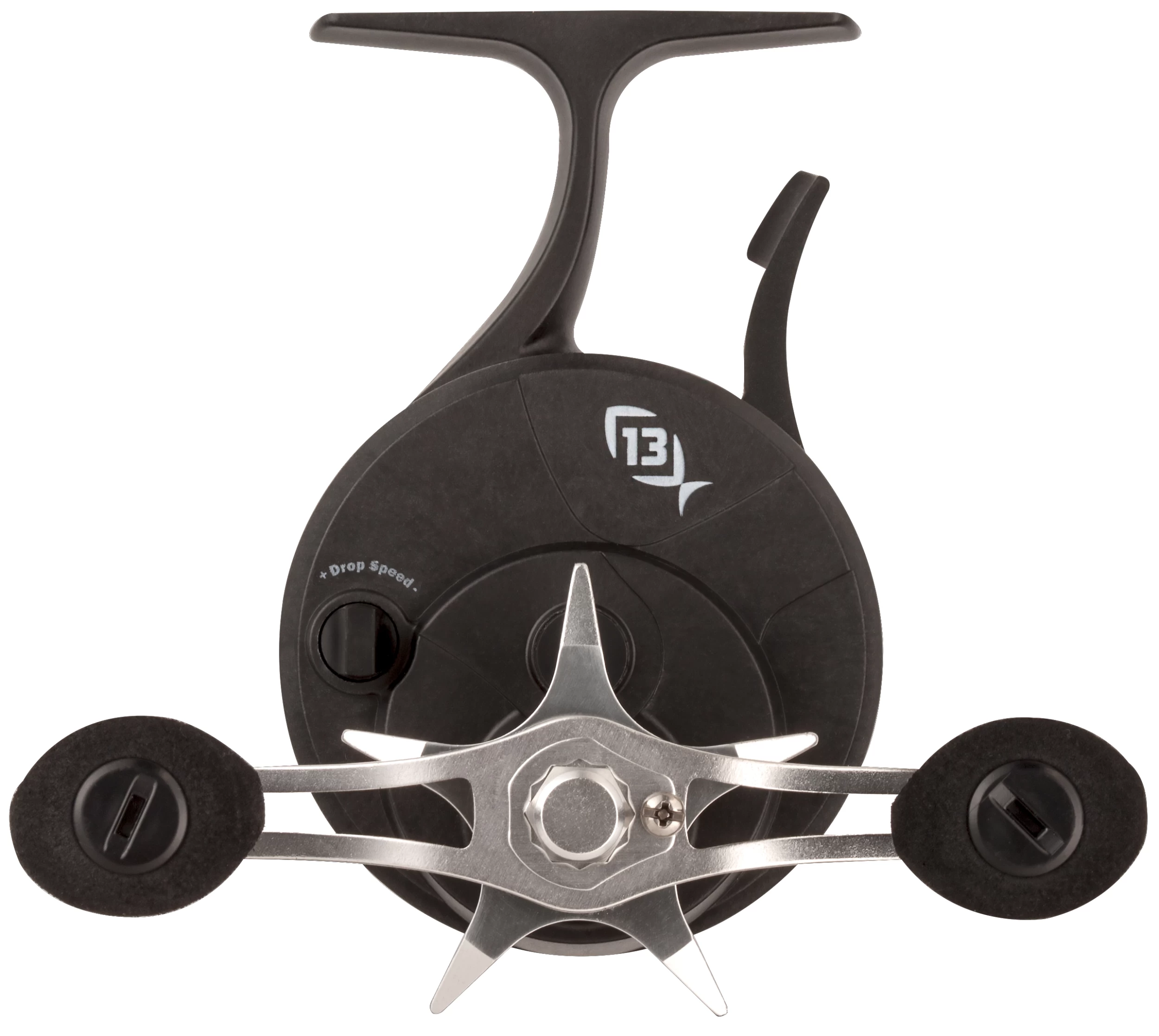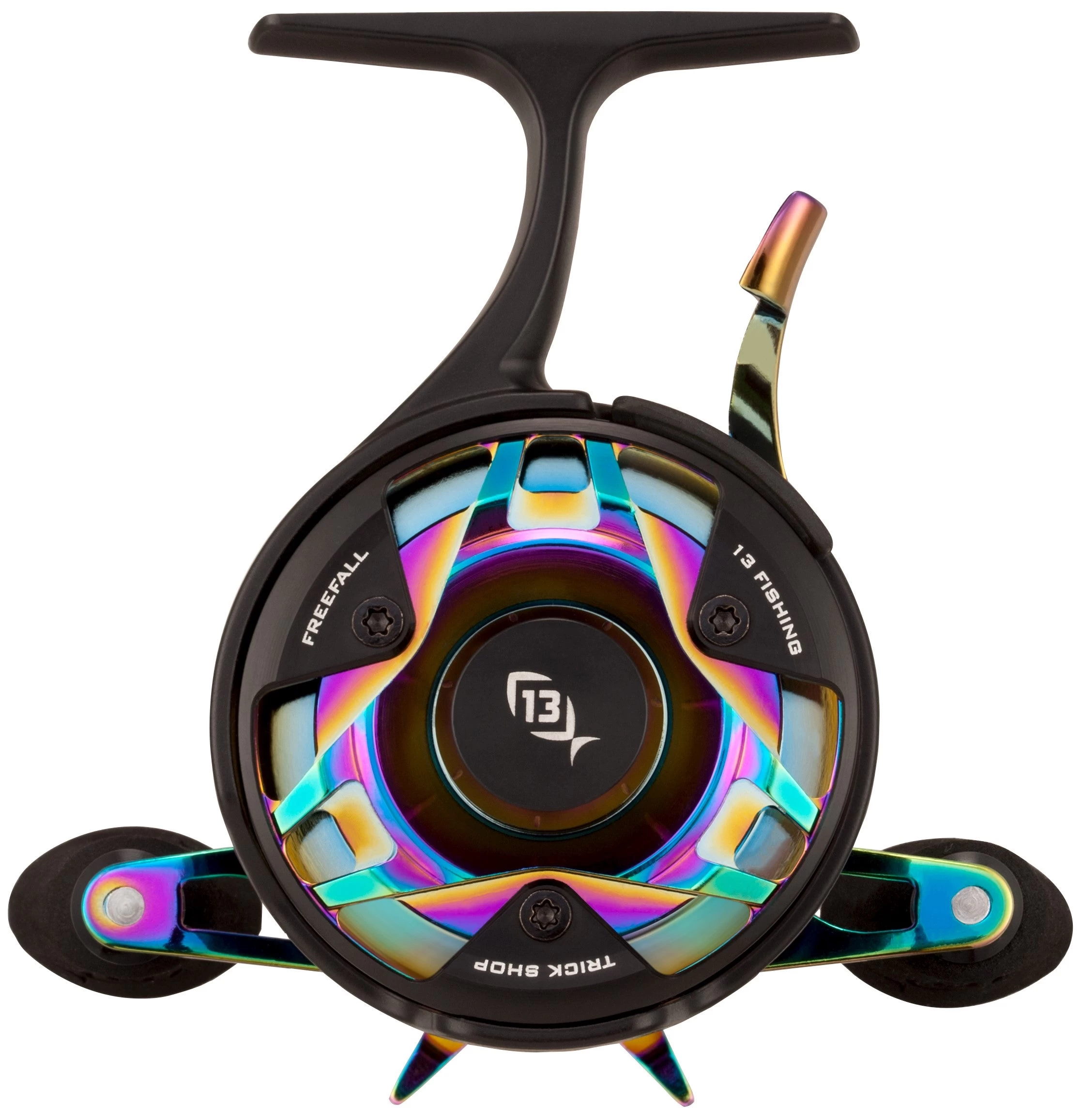 The 13 Fishing FreeFall Carbon is the pinnacle of 13’s ice fishing reels. The revolutionary FreeFall trigger design gives anglers the ultimate control of their bait in front of a flasher or graph on the ice. They allow you to control your line efficiently at various depths to trigger bites. The line guide window paired with a magnetic drop system created for lightweight jigs and lures micro-adjustments allows for ultimate line management.