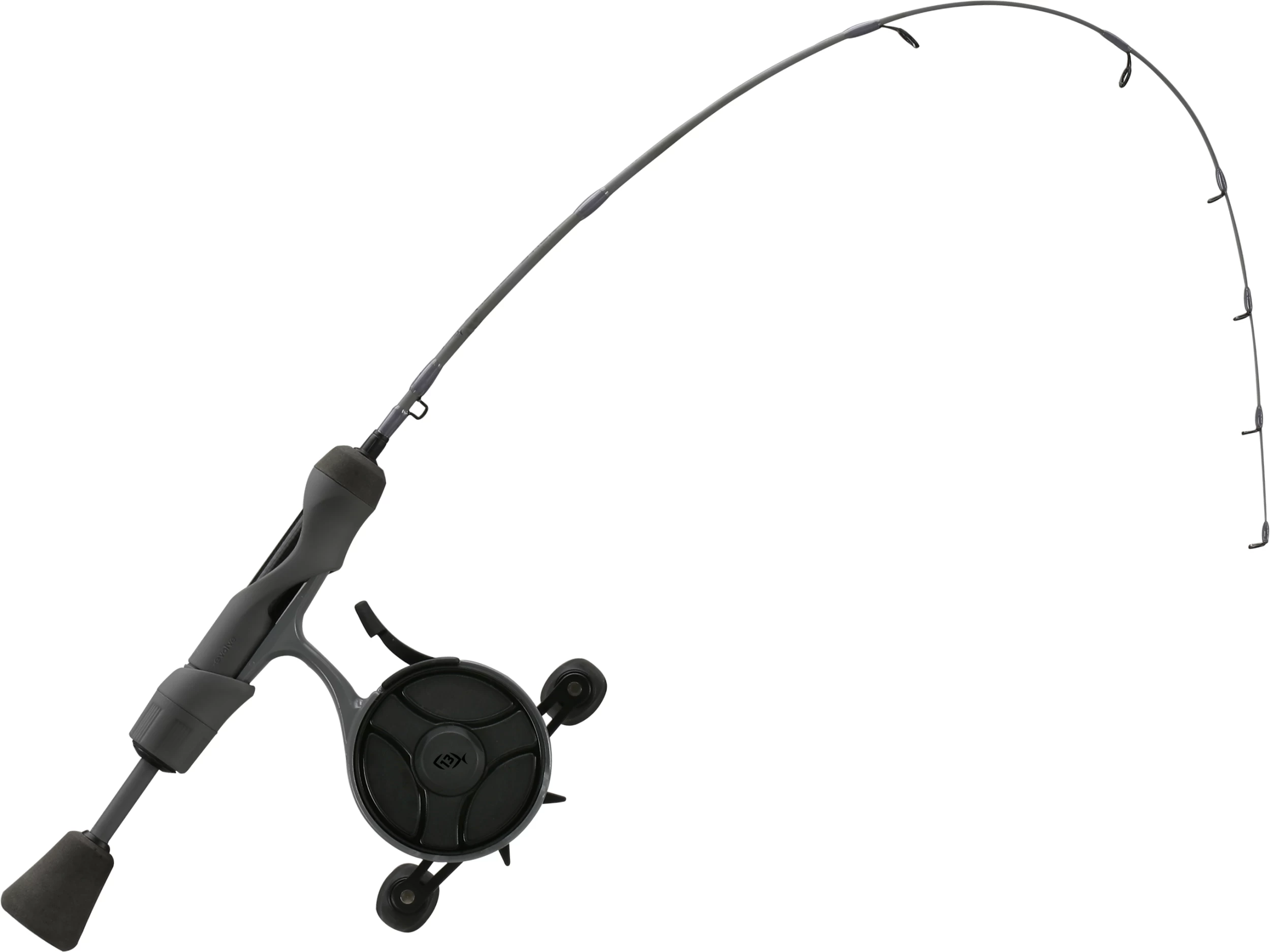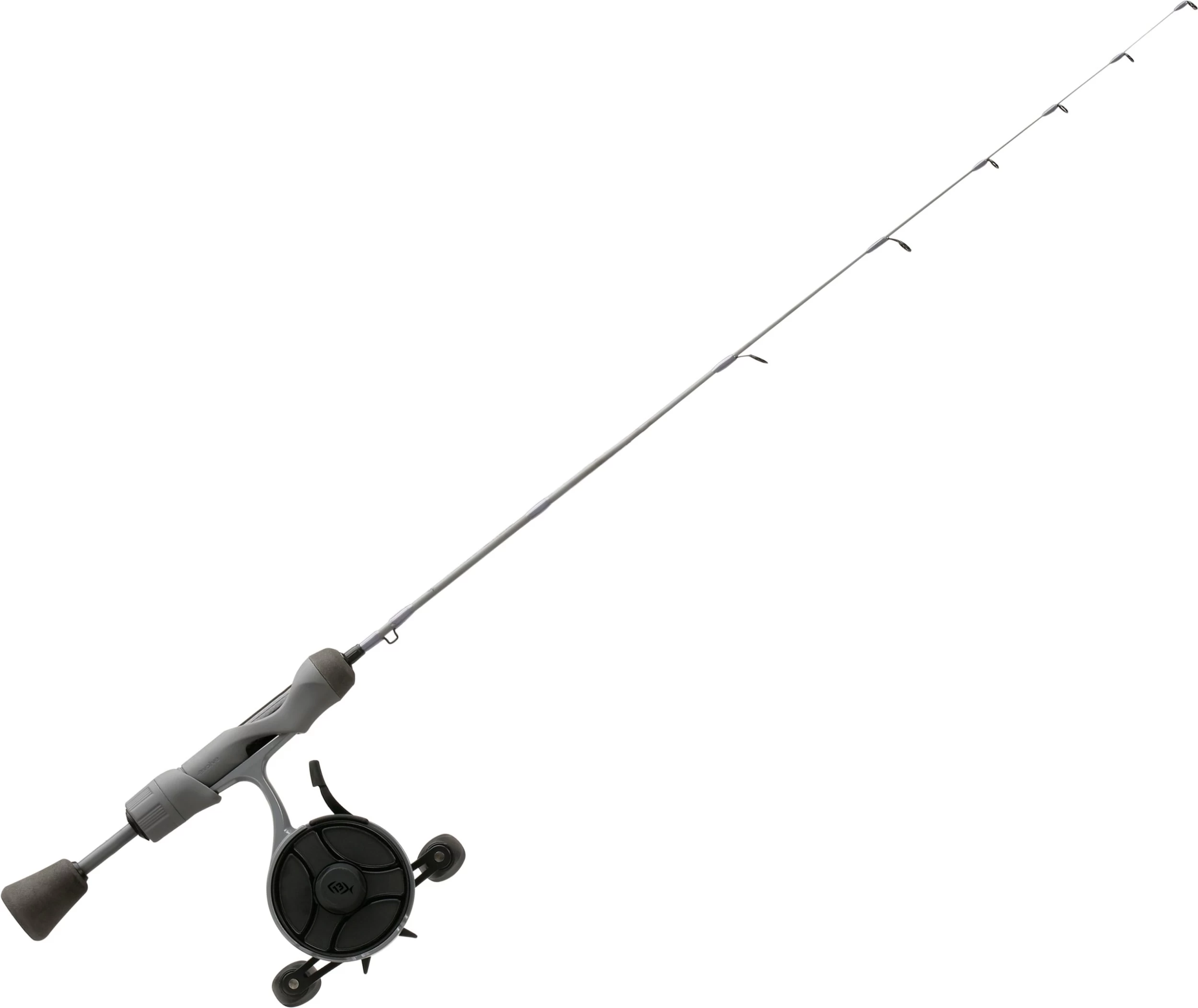 The 13 Fishing Stealth FreeFall Ice Combo allows you to sneak more bites than your friends, thanks to its sleek gray and black design. The FreeFall Ghost reel offers a durable composite frame with soft-touch handle knobs for ultimate comfort. This combo comes with the FreeFall performance window and drop lever for the ultimate reel performance. The Tickle Stick PC2 blank has extreme sensitivity, allowing you to feel the smallest nibble on your bait. This combo is a sure way to get noticed and be envied by your fellow hardwater anglers!