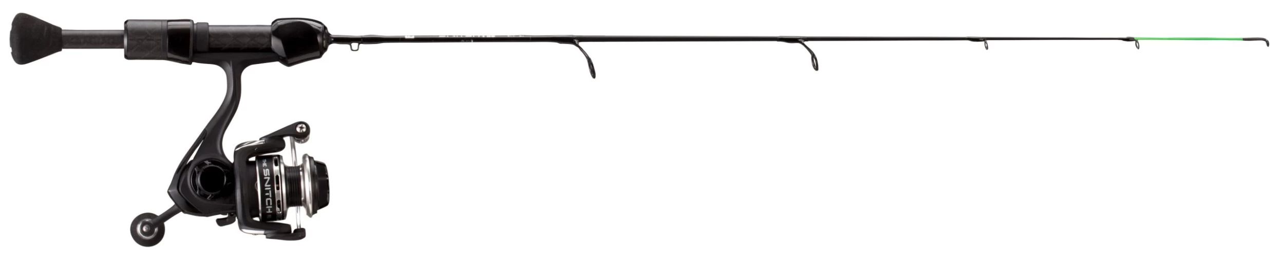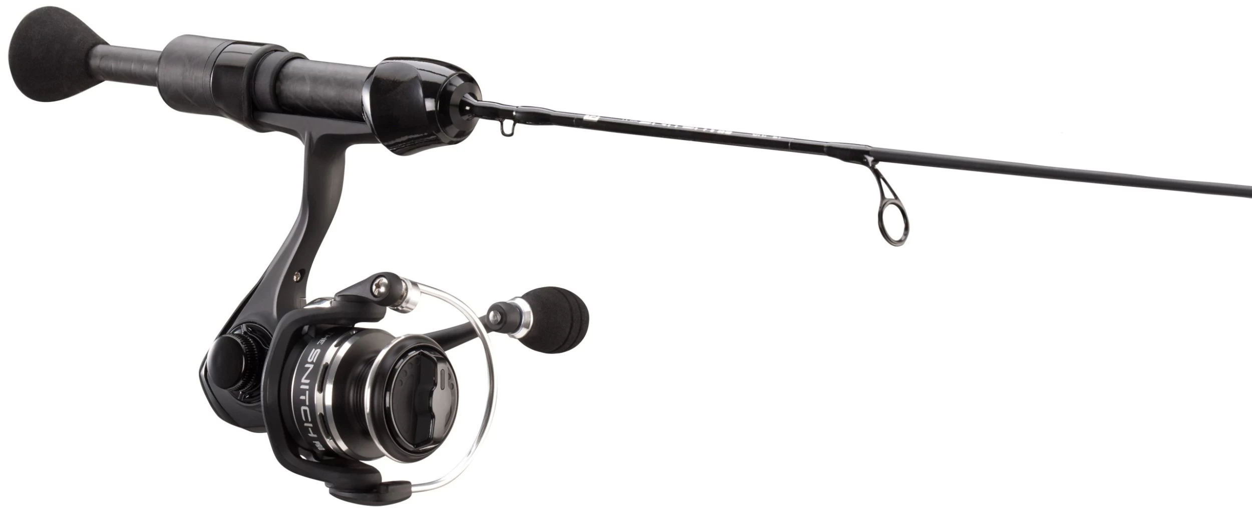 The latest The Snitch Pro Spinning Ice Combo is a perfect blend of performance and quality coupled into one deadly combo. Featuring The Snitch Pro ice rod as the backbone of the combo matching perfectly with the 7-ball-bearing spinning reel. The Snitch Pro ice rod is a solid graphite blank with stainless steel guides and a hi-vis tip, allowing easy bite detection and powerful hooksets. The Evolve carbon handle easily houses the included aluminum spool and handle spinning reel, making for a comfortable and balanced combo. The reel is coated with Defrost reel lube to withstand the harsh winter climate ensuring performance day in and day out. A combo built to handle your next ice fishing adventure featuring a sleek design and quality performance.Â
